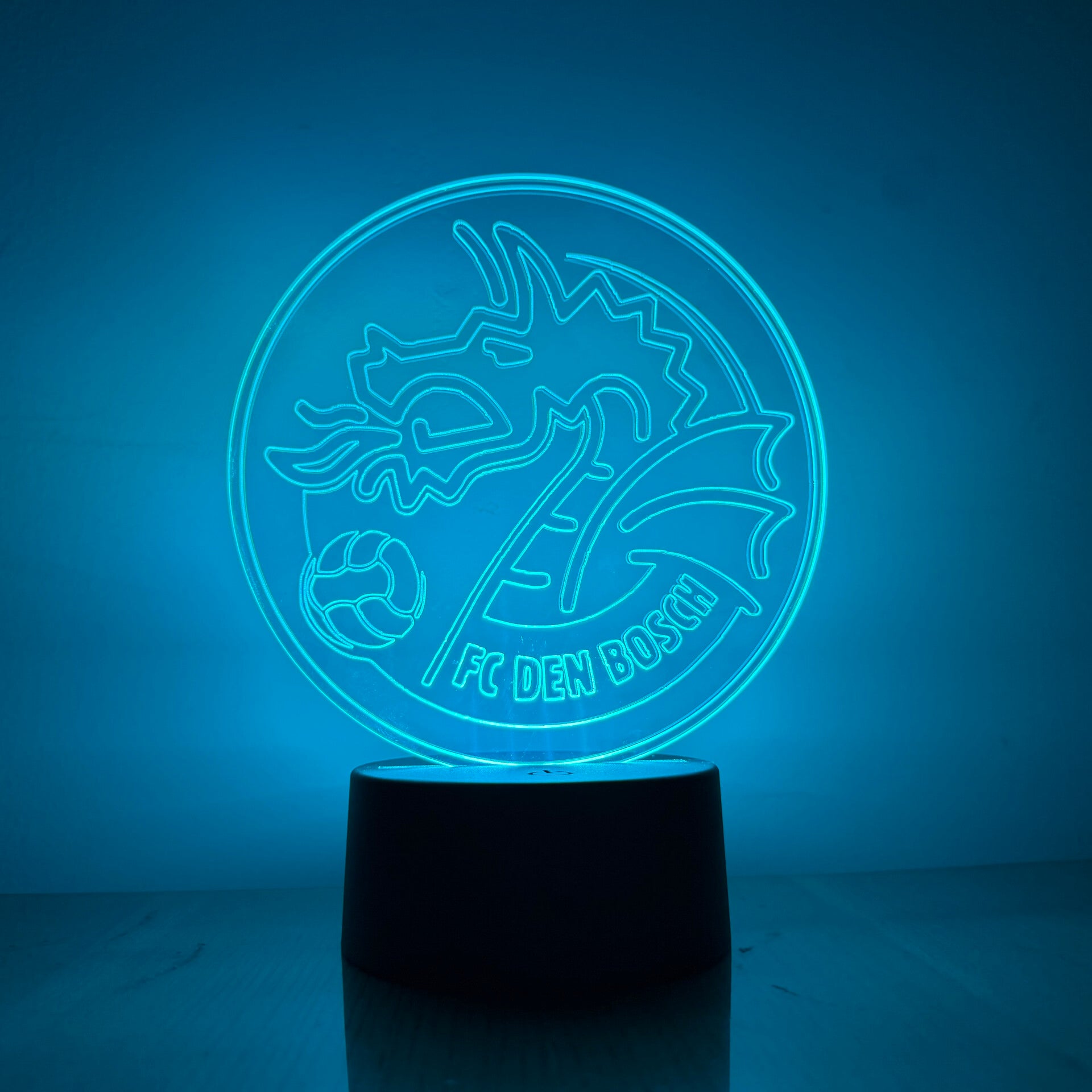 Deze stoere ledlamp staat te stralen in de (slaap)kamer van iedere FC Den Bosch fan! Deze lamp staat stoer als decoratie en is daarnaast de perfecte nachtlamp. De lamp kan aangezet worden door middel van de meegeleverde usb aansluiting, en is voorzien van een afstandsbediening. Hiermee kan je verschillende kleuren kiezen, inclusief een discostand.